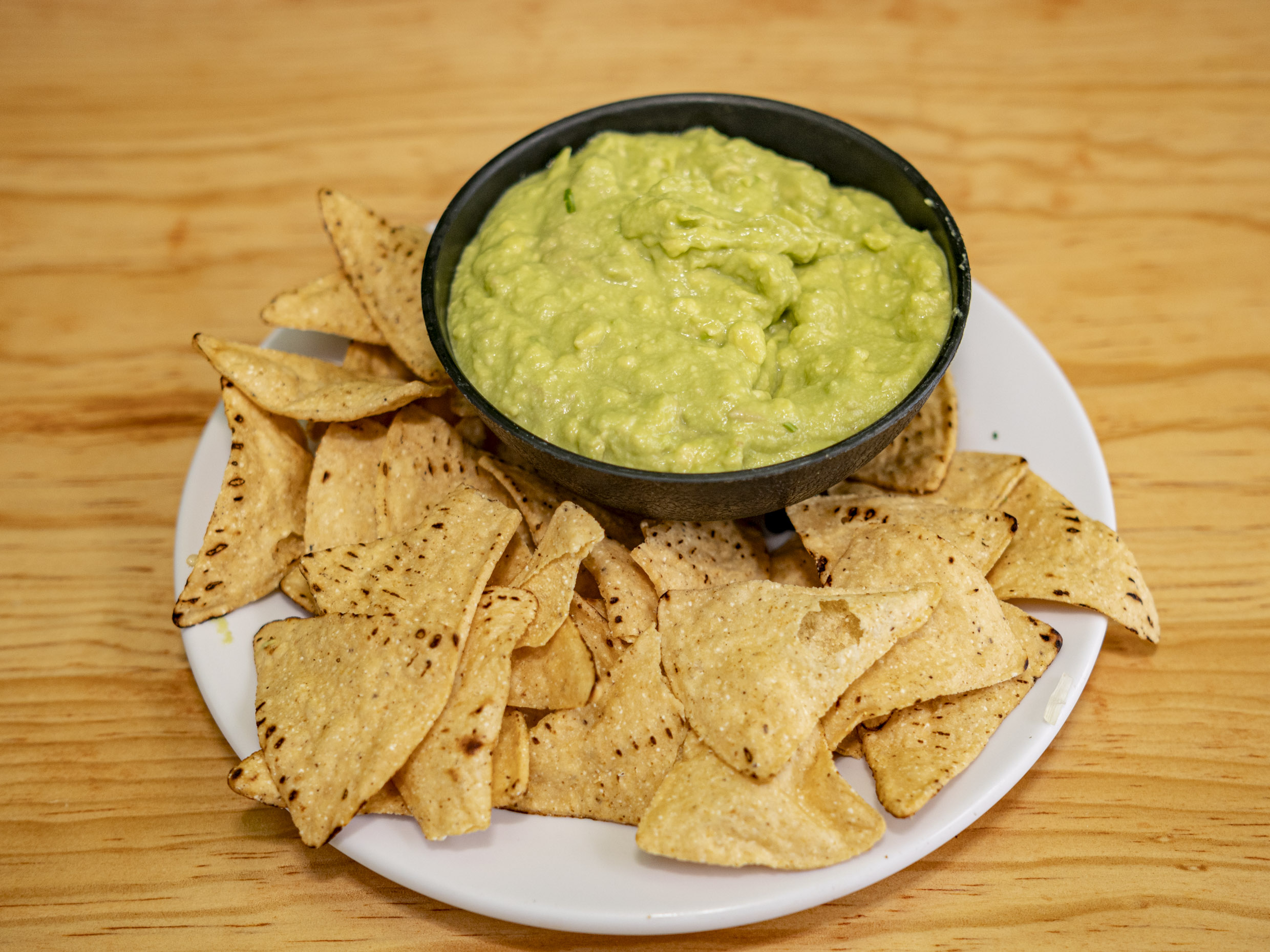 Tortilla burrera, queso manchego, guacamole, cebolla y cilantro.