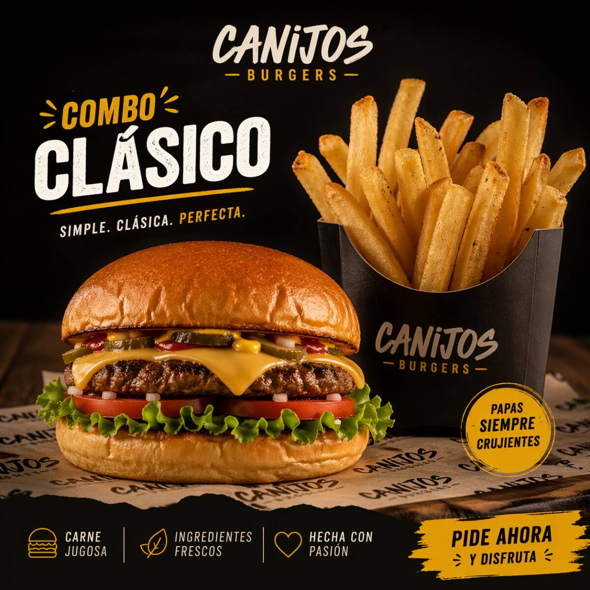 Jugosa carne de res 100% premium, asada a la parrilla para resaltar su sabor natural, servida en pan brioche artesanal ligeramente tostado. Acompañada de queso cheddar madurado, lechuga fresca y crujiente, tomate en rodajas, cebolla caramelizada y nuestra salsa especial de la casa, elaborada con un toque secreto.