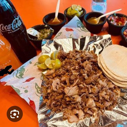 Incluye salsa verde, salsa roja, cebolla, cilantro, limones, porción de 6 tortillas.