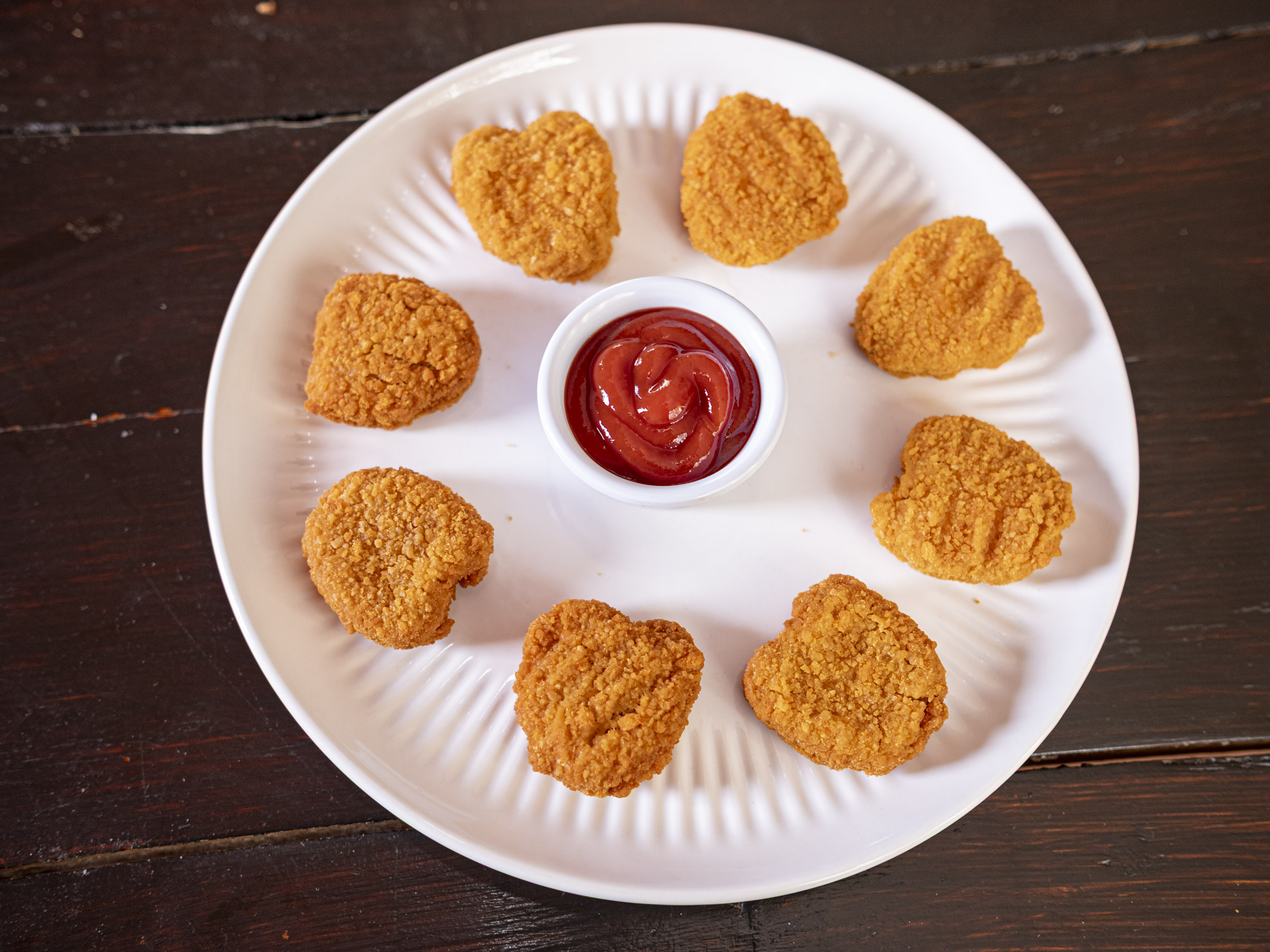 8 nuggets acompañadas de cátsup.