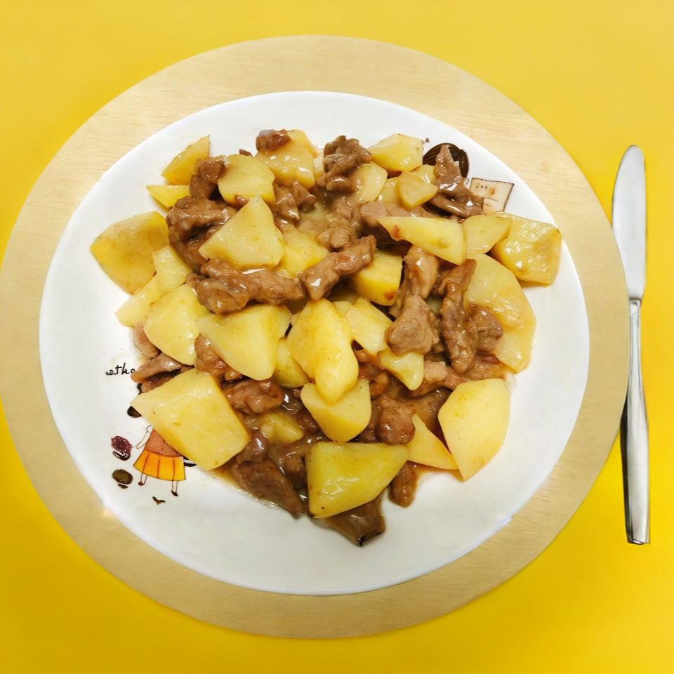 Una mezcla reconfortante de patatas y ternera cocinadas a fuego lento en una salsa sabrosa y especiada.