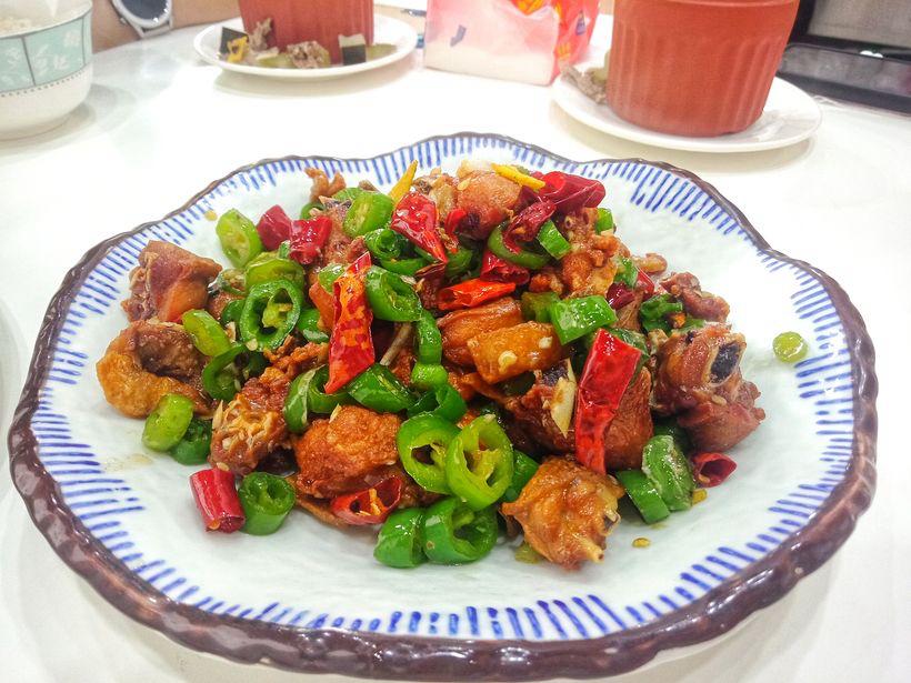 Trozos de pollo salteados con vegetales frescos y especias, con un toque de picante que hará vibrar tu paladar.
