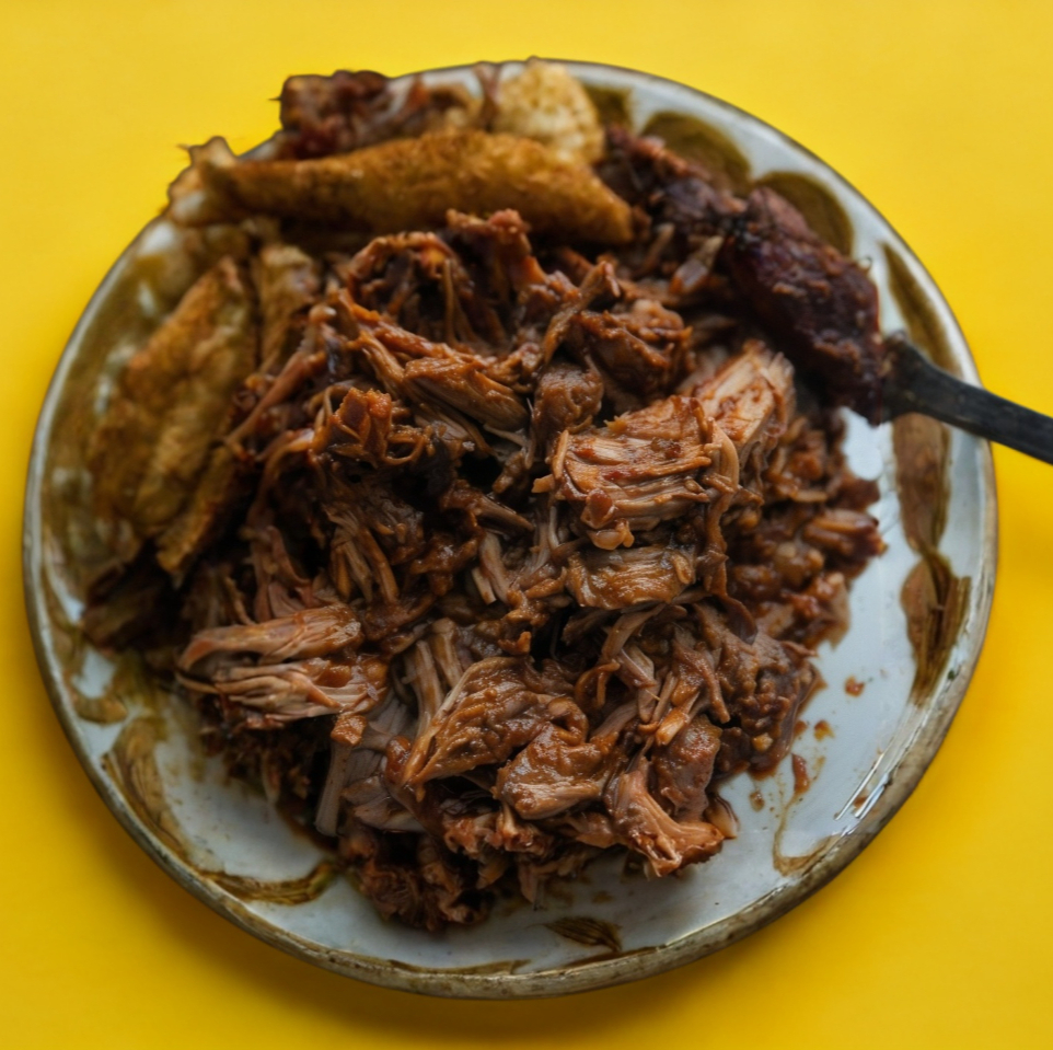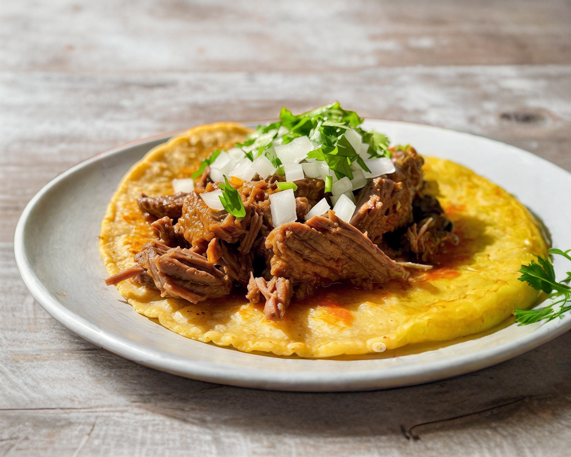 Medio kilo de birria picada, acompañada de tortillas y complementos.