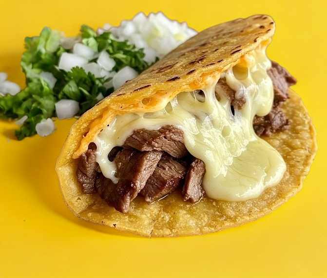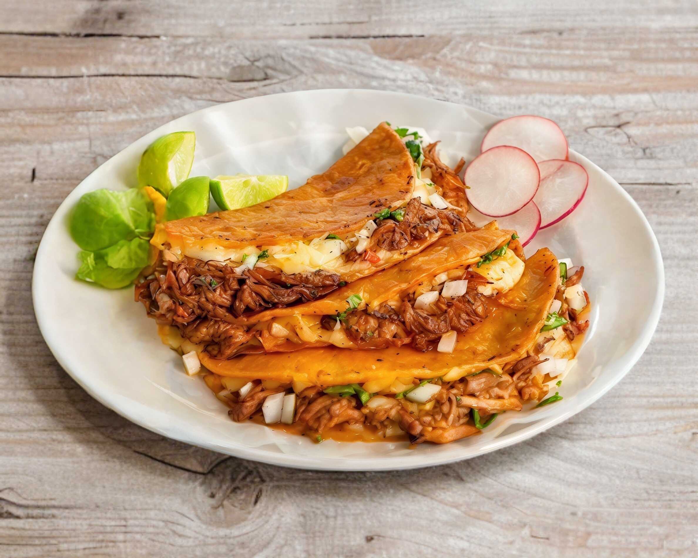 4 deliciosas quesabirrias y un consomé con carne para chopear.