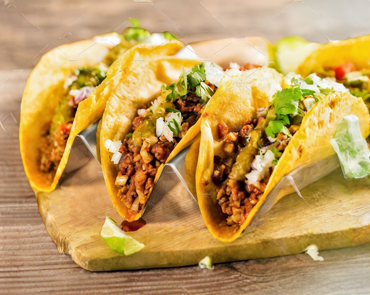 Taco campechano de asada de cerdo y longaniza servido con cebollita asada.