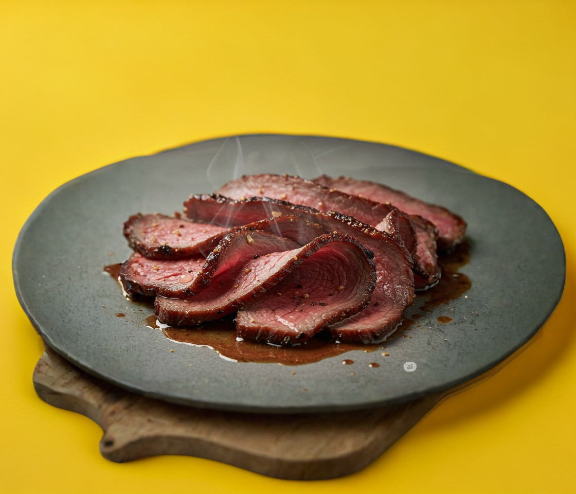 Medio kilo de arrachera fileteada acompañada de tortillas y complementos.