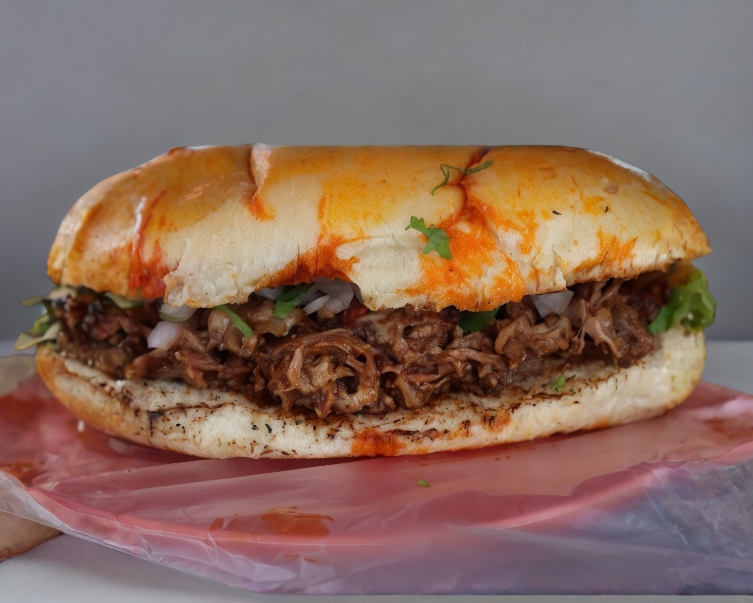 Torta de birria de res.