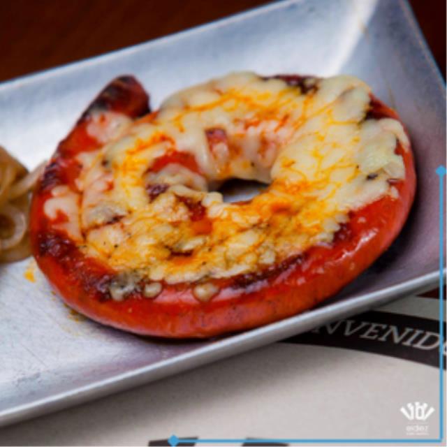 Queso mozzarella, champiñones y chorizo estilo argentino.