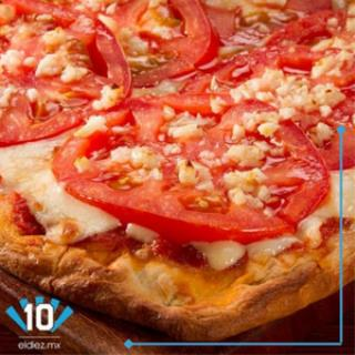 Salsa de tomate, queso mozzarella, rebanadas de jitomate, ajo y orégano.