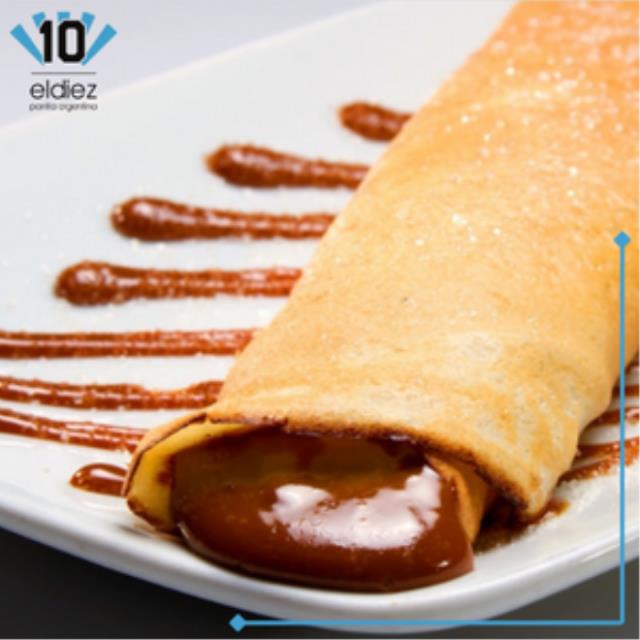 Panqueque tradicional argentino con dulce de leche y plátanos