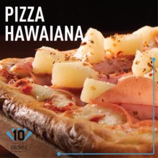 Salsa de tomate, queso mozzarella, jamón y piña.