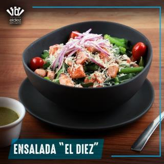 Mezcla de lechugas, croutones, pollo, queso parmesano y aderezo César.