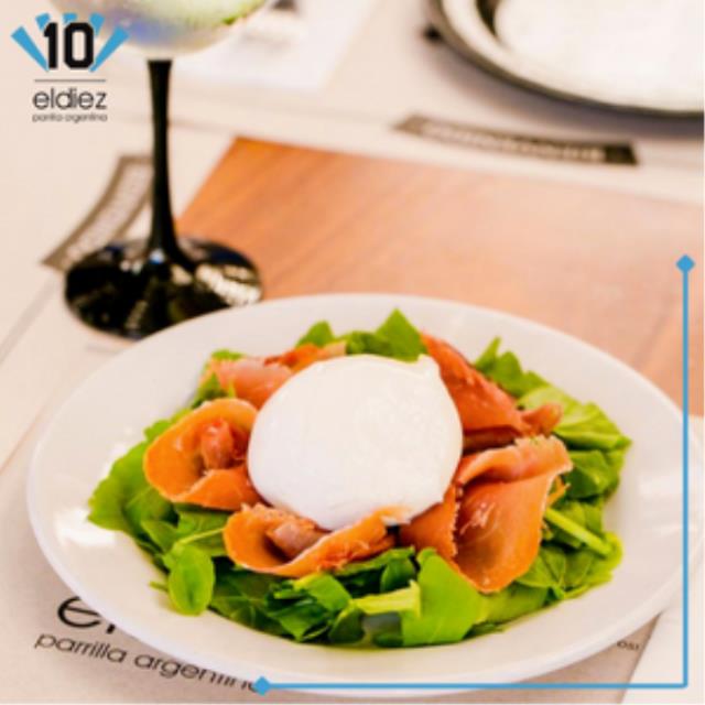 ¡ENTRADA FRIA! Burrata fresca italiana, prosciutto y arúgula.