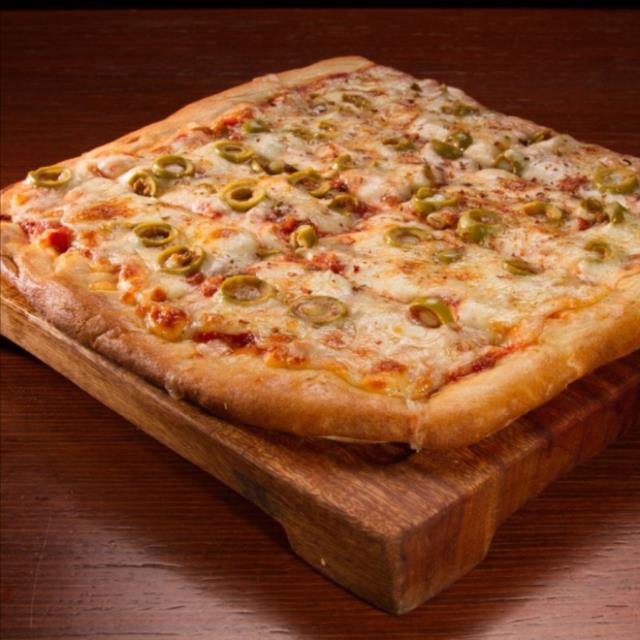 Salsa de tomate, queso mozzarella, pimiento rojo y verde, cebolla, calabaza, champiñón y aceitunas.