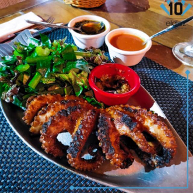 Pulpo a la parrilla con guarnición de papas cambray al romero o verduras a la parrilla o ensalada