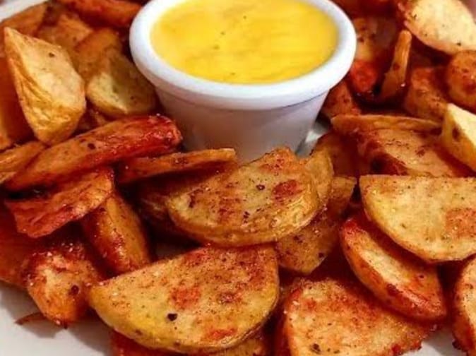 Servido con bastones de zanahoria y apio, papas fritas, Ranch y aderezo a elegir. barbacoa , búfalo ranch, lemon peper y mango