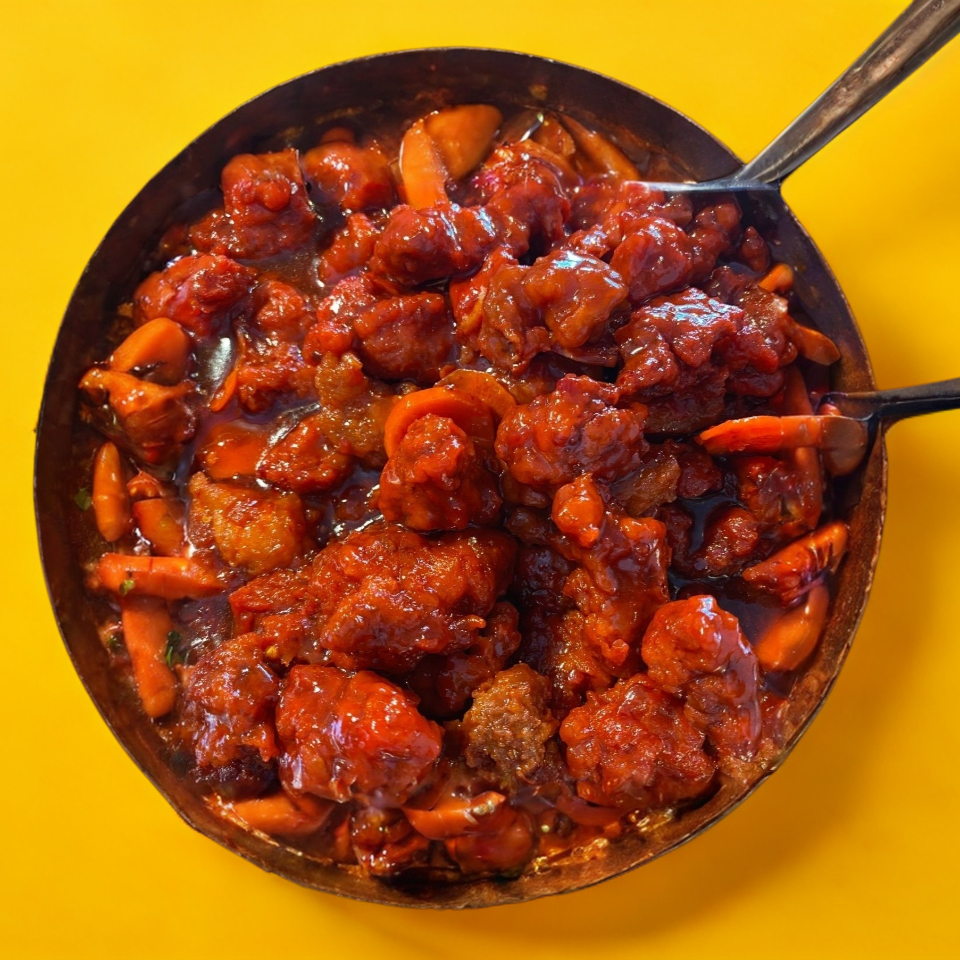 Carne de cerdo picante con chayote, zanahoria y Chile jalapeño.