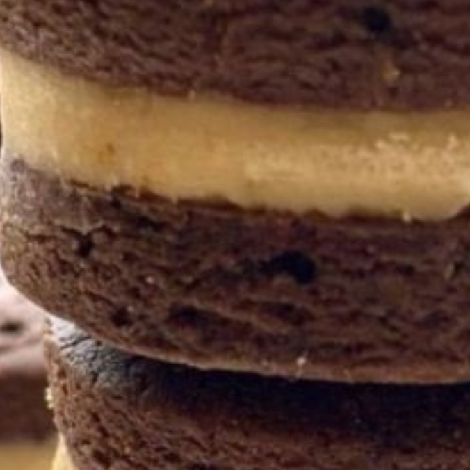 Alfajor relleno de dulce de leche con corazón Oreo, cubierto de chocolate blanco.