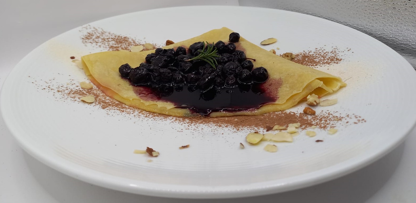 Crepas rellena de compota de blueberry.