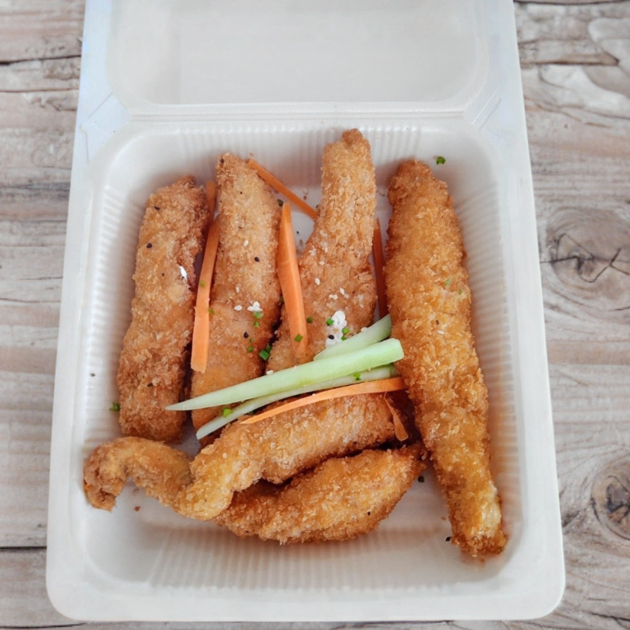 Rollo empanizado camaron extra tampico, kushiagues, y tiras pollo