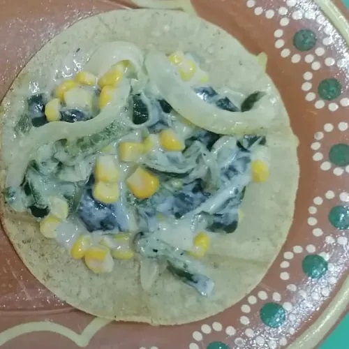 Rajas poblanas con crema y elote