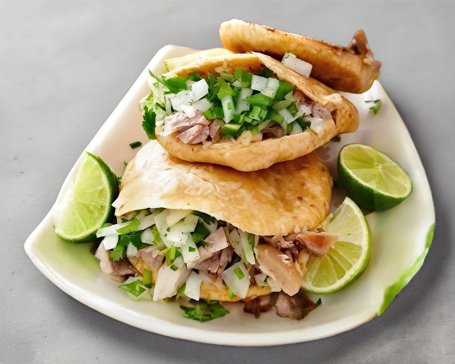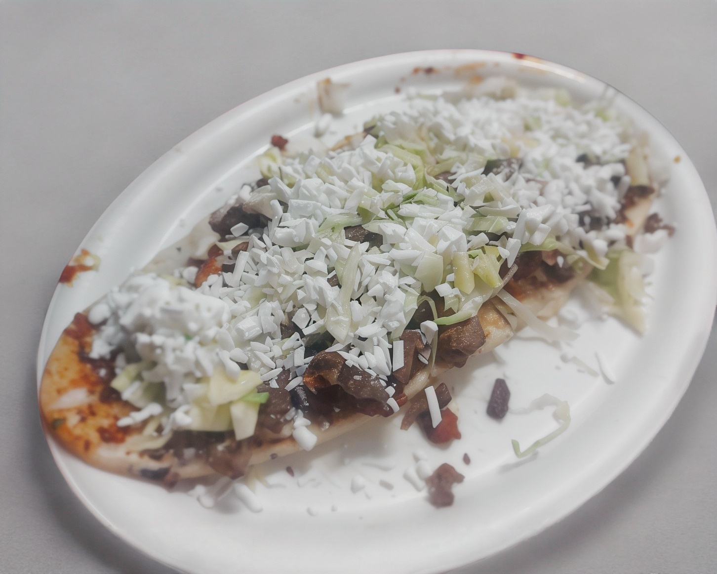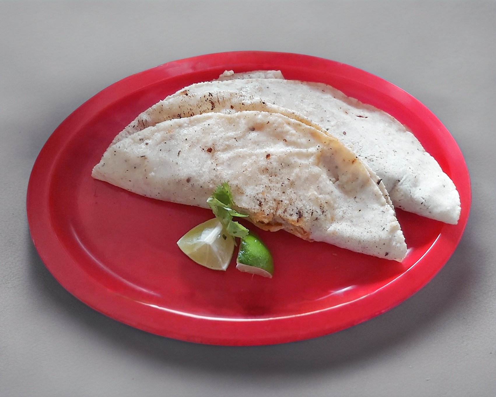 Preparada con tortillas de harina, pastor, piña, queso Oaxaca, cebolla y cilantro.
