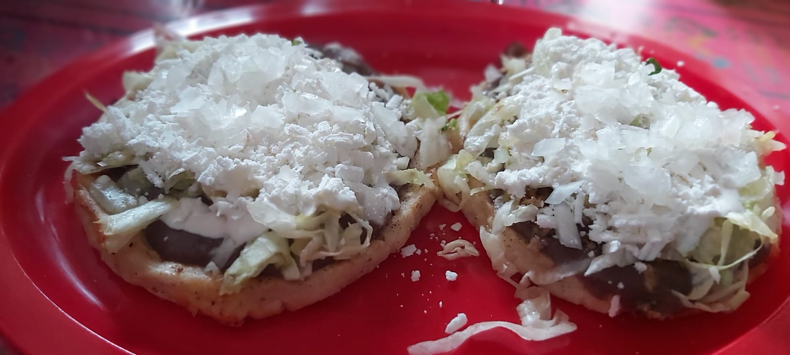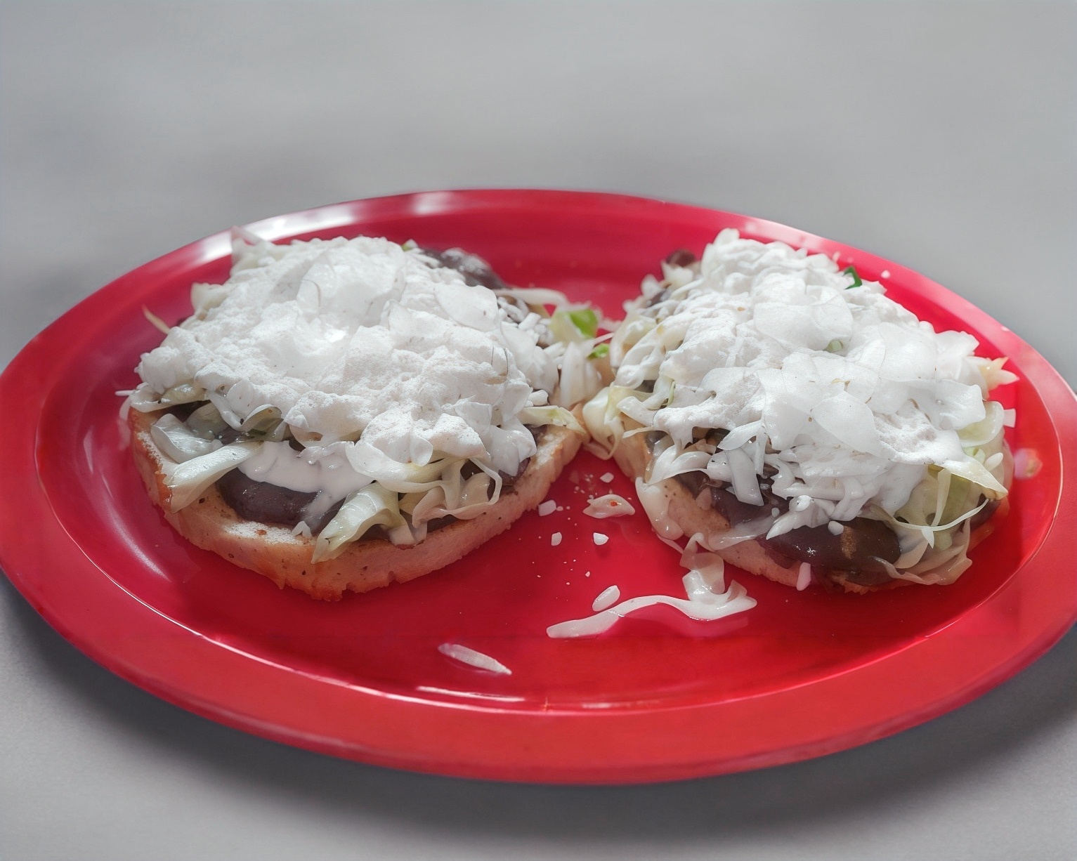 Las preparamos con frijol, mayonesa, queso Oaxaca, cebolla, jitomate, aguacate, lechuga.