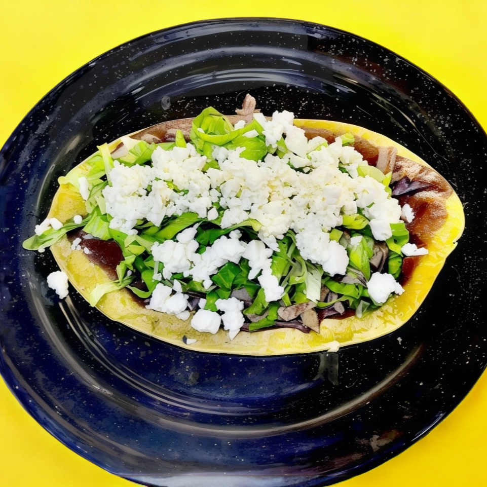 Con jamón de pavo ahumado, queso panela, aguacate machacado, espinaca y jitomate. servido con papas o camote.