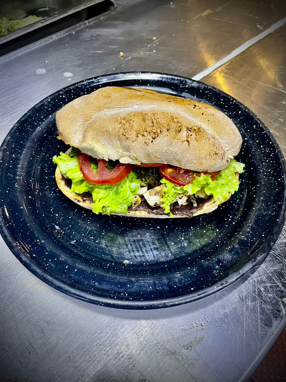 Con frijol negro, queso gouda, pimiento, jitomate, cebolla y lechuga. Todo envuelto en tortilla de harina.