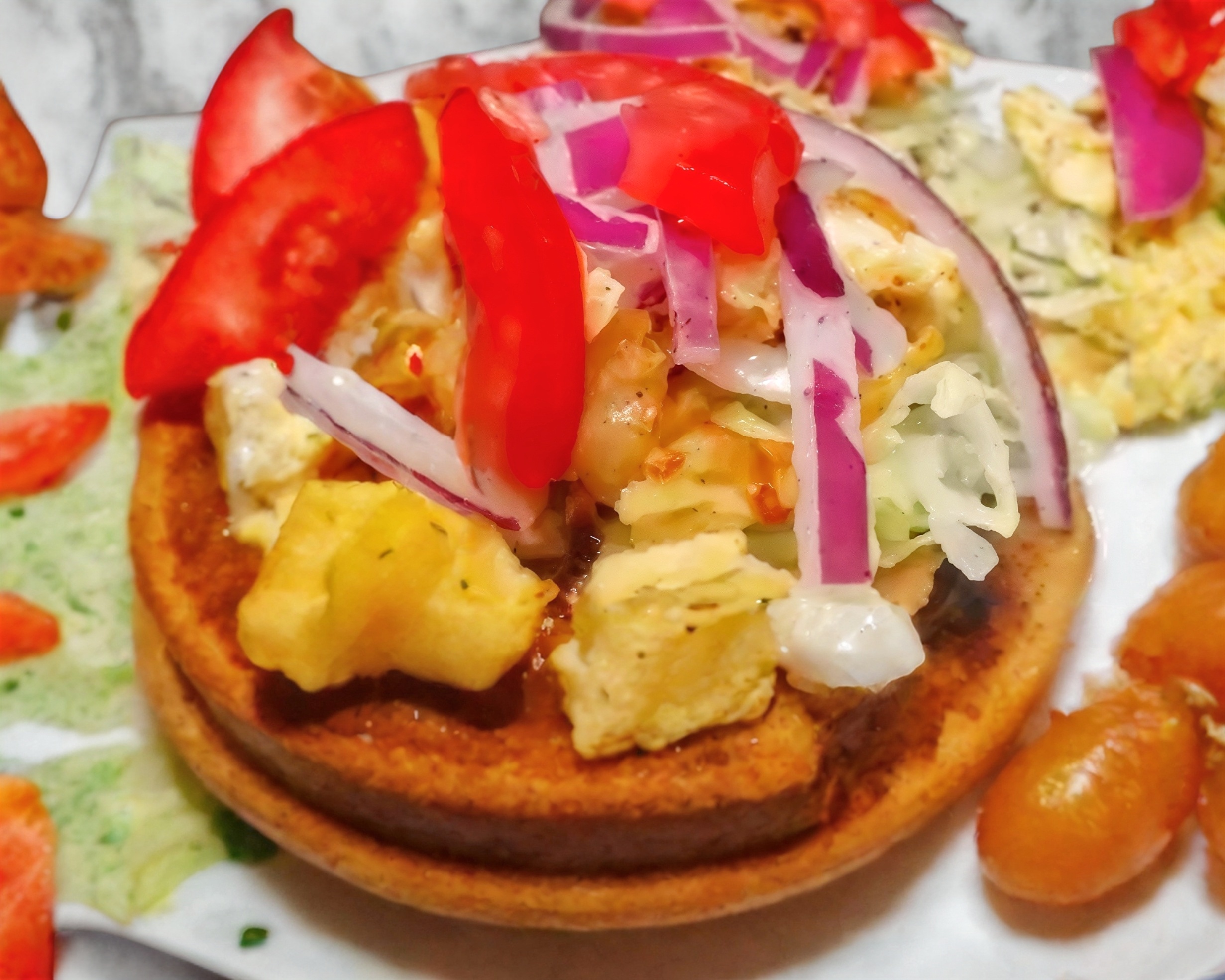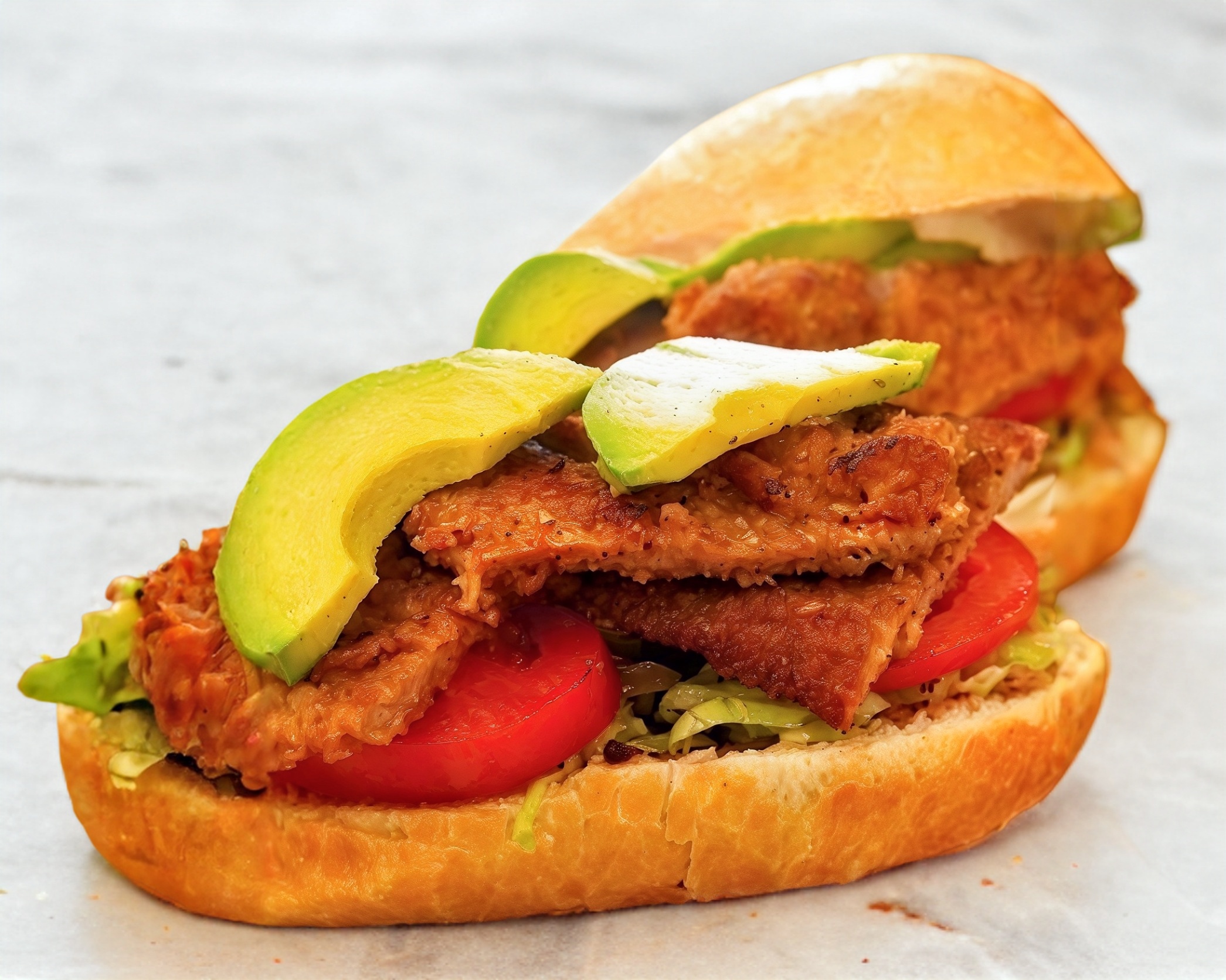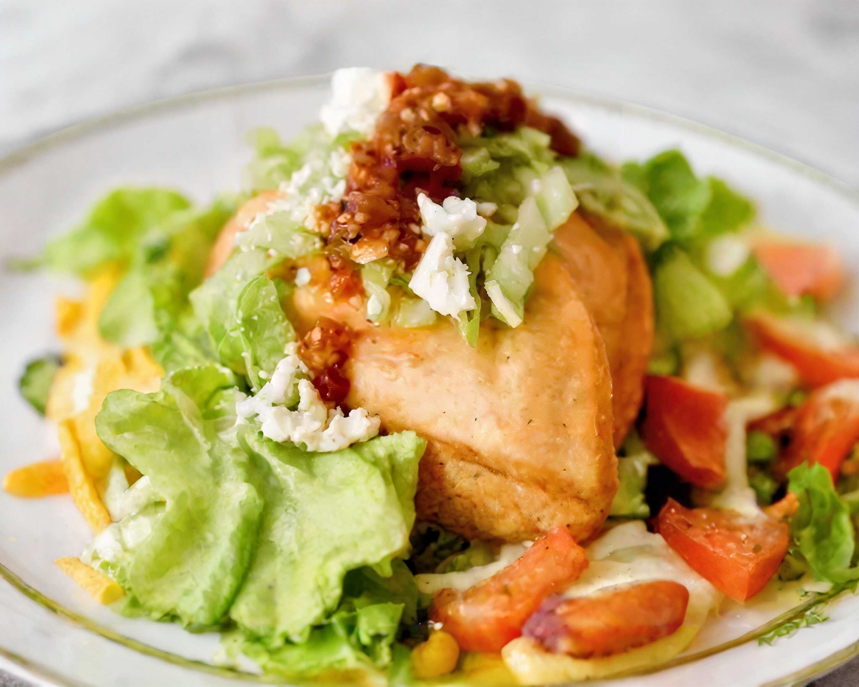 Delicioso salbute con proteina a elegir, lechuga, tomate, cebolla morada curtida y aguacate.