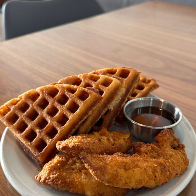 WAFFLES CON TIRAS DE POLLO EMPANIZADAS