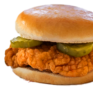 Pan Brioche, Tiras de Pollo Empanizadas, Pickles, Queso Manchego y Salsa Secreta de la casa (Acompañado con Chips a un Lado)