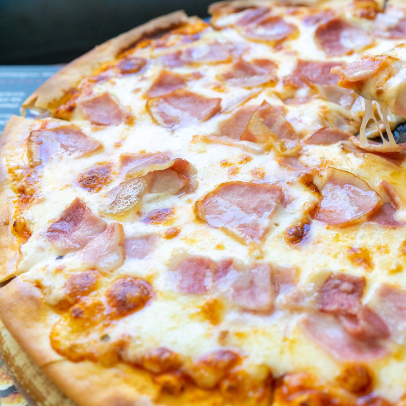 Salsa de Tomate, Queso Mozzarella, Jamón, Piña en trocitos