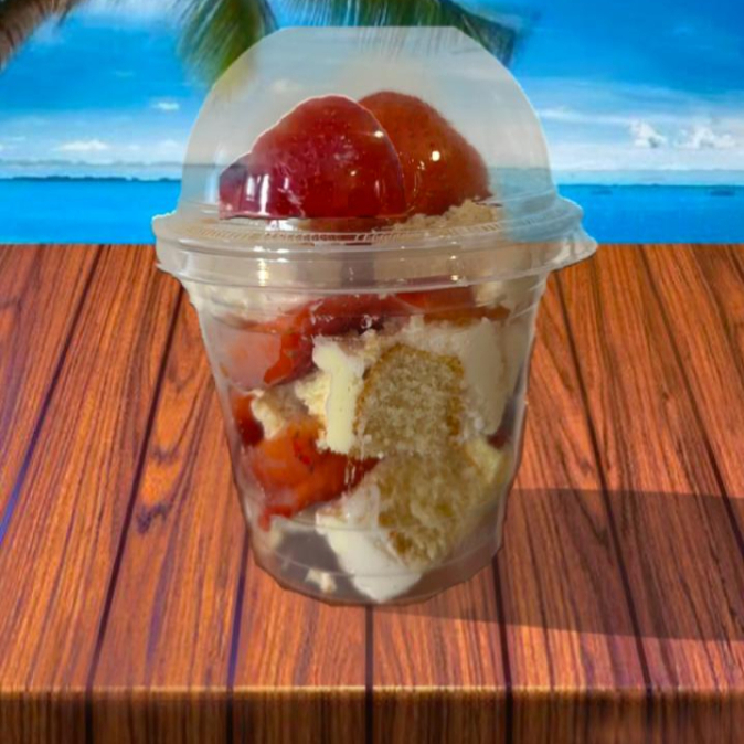 Deliciosos cubos de pastel de vainilla con fresas bañados con 3 leches