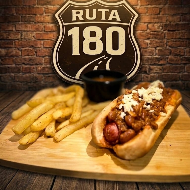 Son sazon del norte. hot-dog con salchicha de pavo envueto en tocino acompañado del famoso chilli de la casa. acompañado de papas a la francesa.