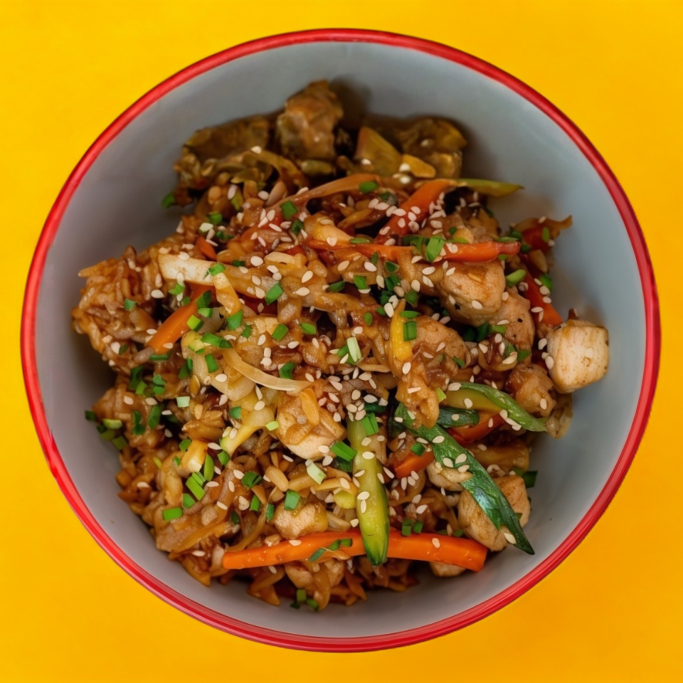 Arroz frito estilo oriental con pollo y vegetales /500 gr/