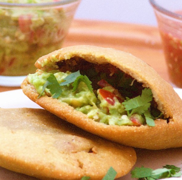 Base de masa de maíz en forma de tortilla gruesa rellena de maciza.