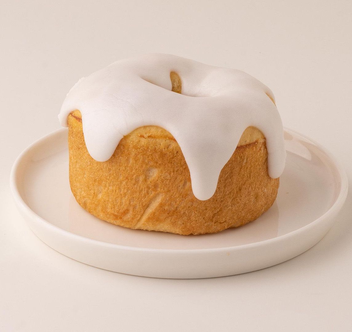 Pan brioche suave y esponjoso, relleno con cremoso queso crema philadelphia, decorado con nuestro glass especial de la casa. Tamaño individual.