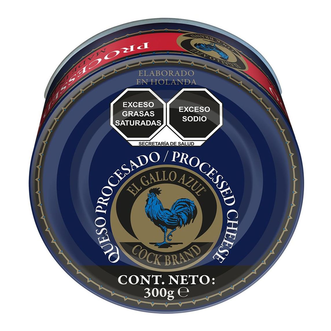Lata de Queso Fundido Gallo Azul, con su autentico sabor holandes, en una practica presentacion, ideal para disfrutar en cualquier momento. Contenido neto 300 gr