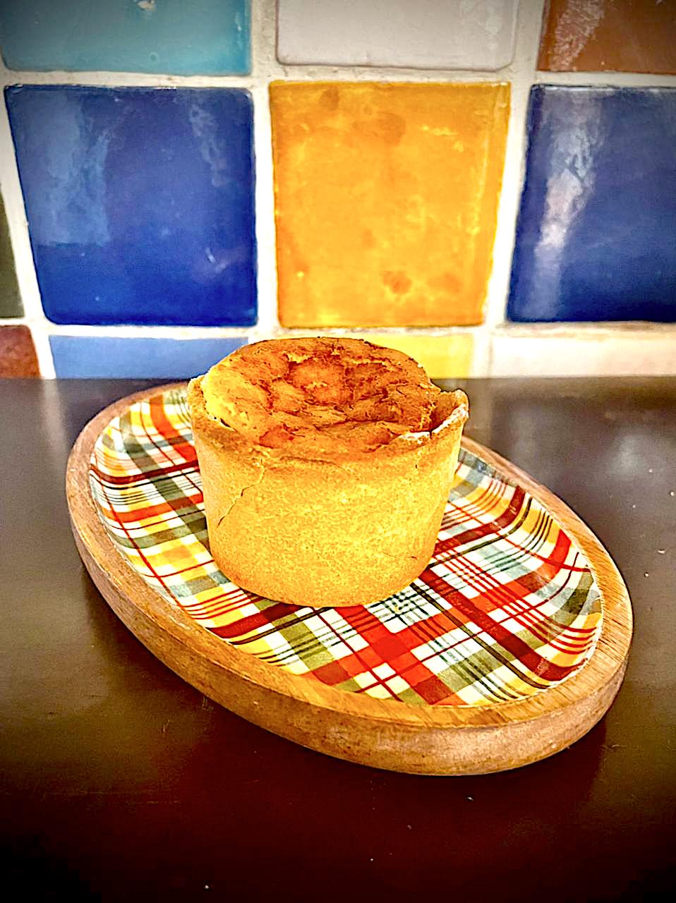 Con jamón de pavo ahumado en leña, queso gouda y salsa bechamel.