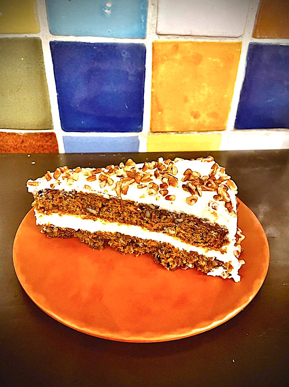 Con nuez troceada cubierta de frostin de queso Philadelphia y nuez moscada