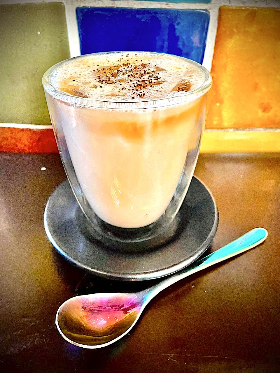 Smoothie de crema de cacahuate con plátano y cacao orgánico. toppings: quinoa inflada, nuez, chía, coco rayado, granola y amaranto. .