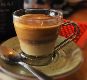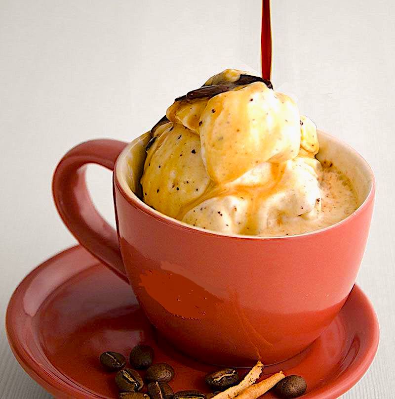 2 scoops de helado de vainilla ahogadas en espresso intenso & Baileys