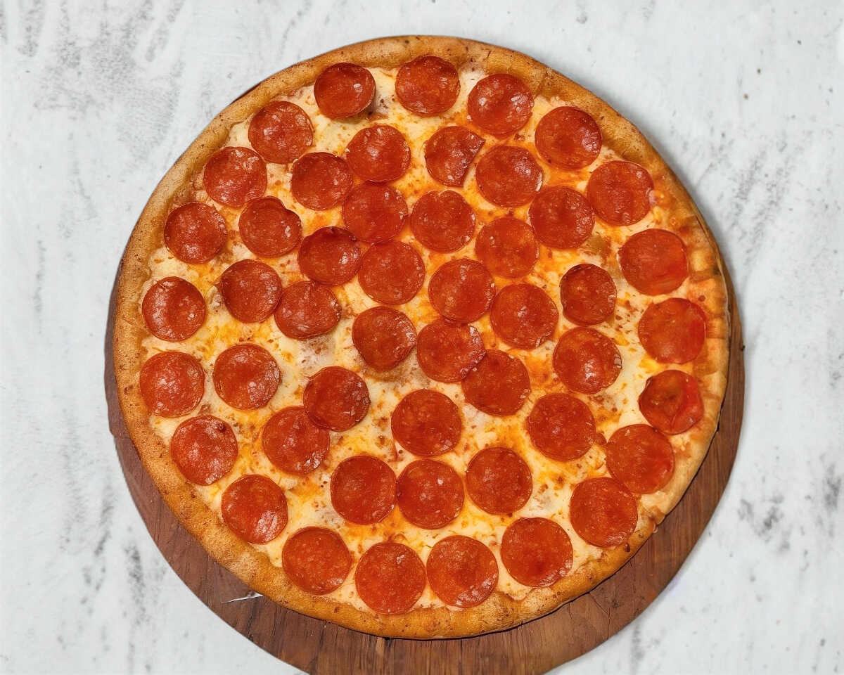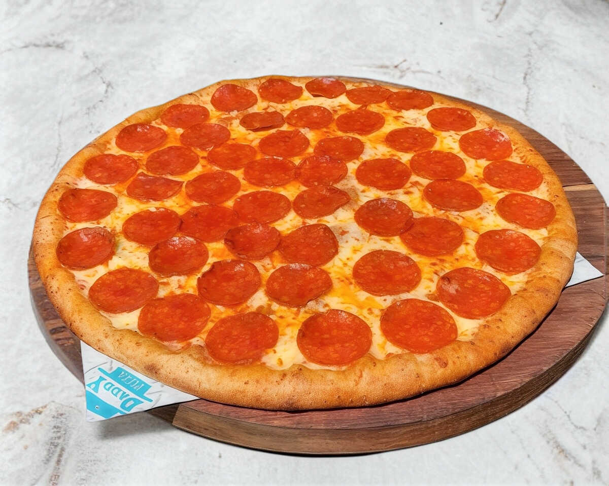 (base de frijoles, peperoni, tocino, chorizo, jalapeños y mozzarella)