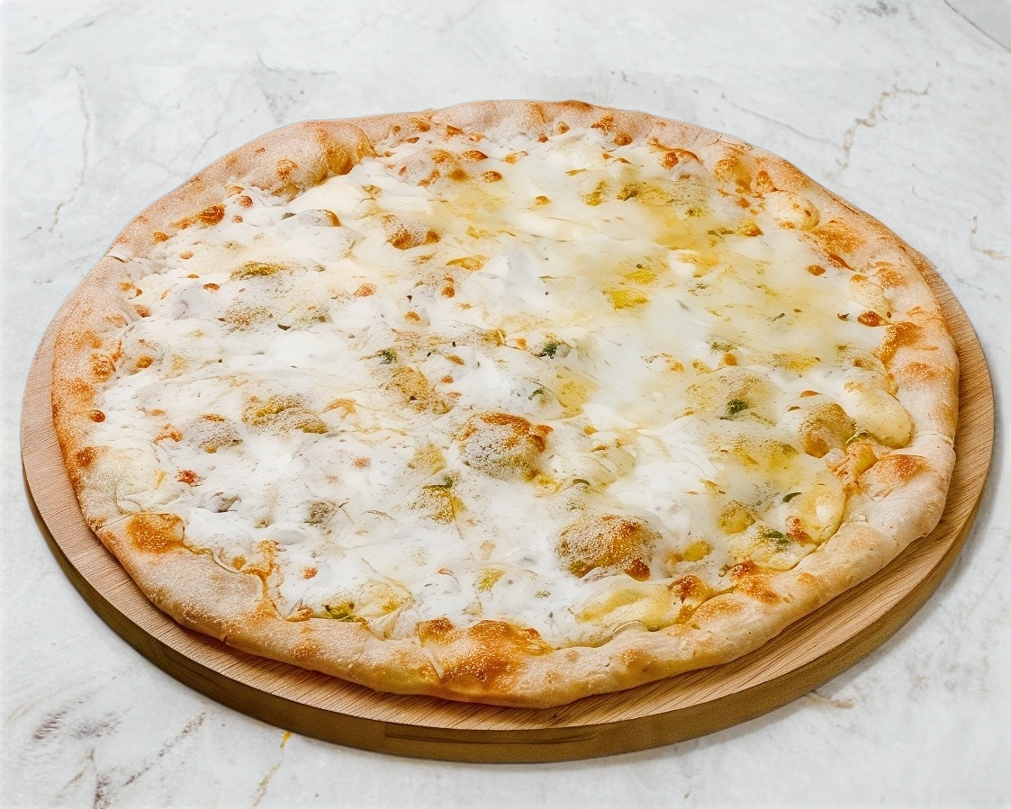 Champiñón, pollo, tocino, cebolla y mozzarella