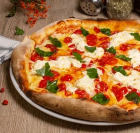 Fajitas de pollo, espinacas, elote, cebolla, pimientos y mozzarella