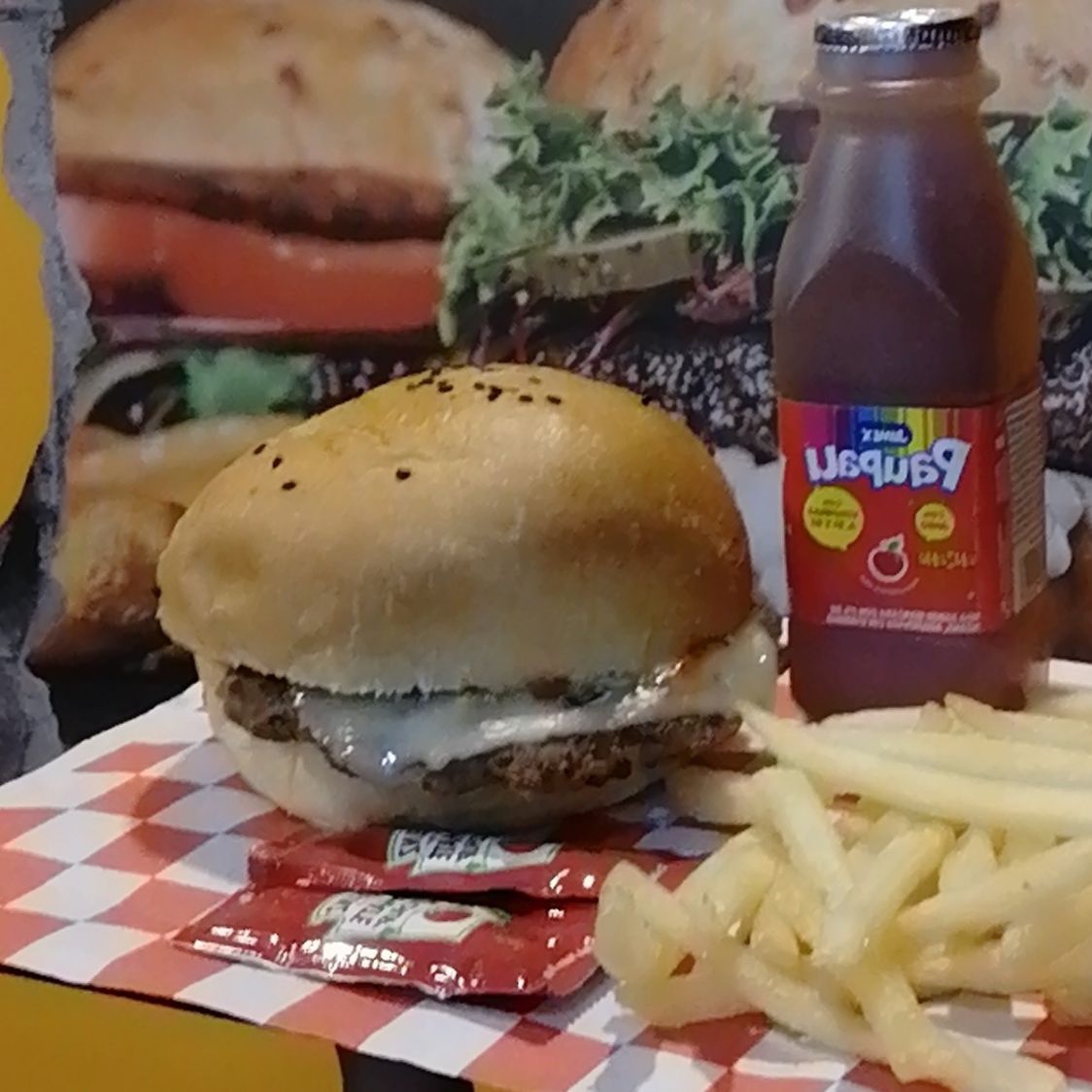 Carne 100% res, pan brioche artesanal con ajonjolí, rodaja de tomate, cebolla sazonada, queso Gouda, lechuga fresca, rodaja de piña a la plancha y aderezos.