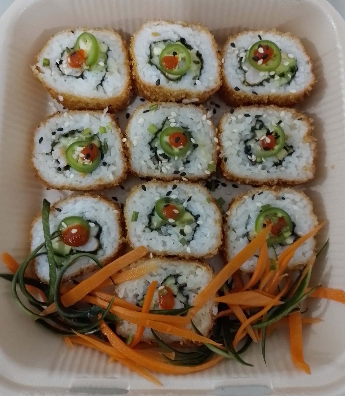 empanizado, p/d, queso manchego, camaron , pepino y aguacate
