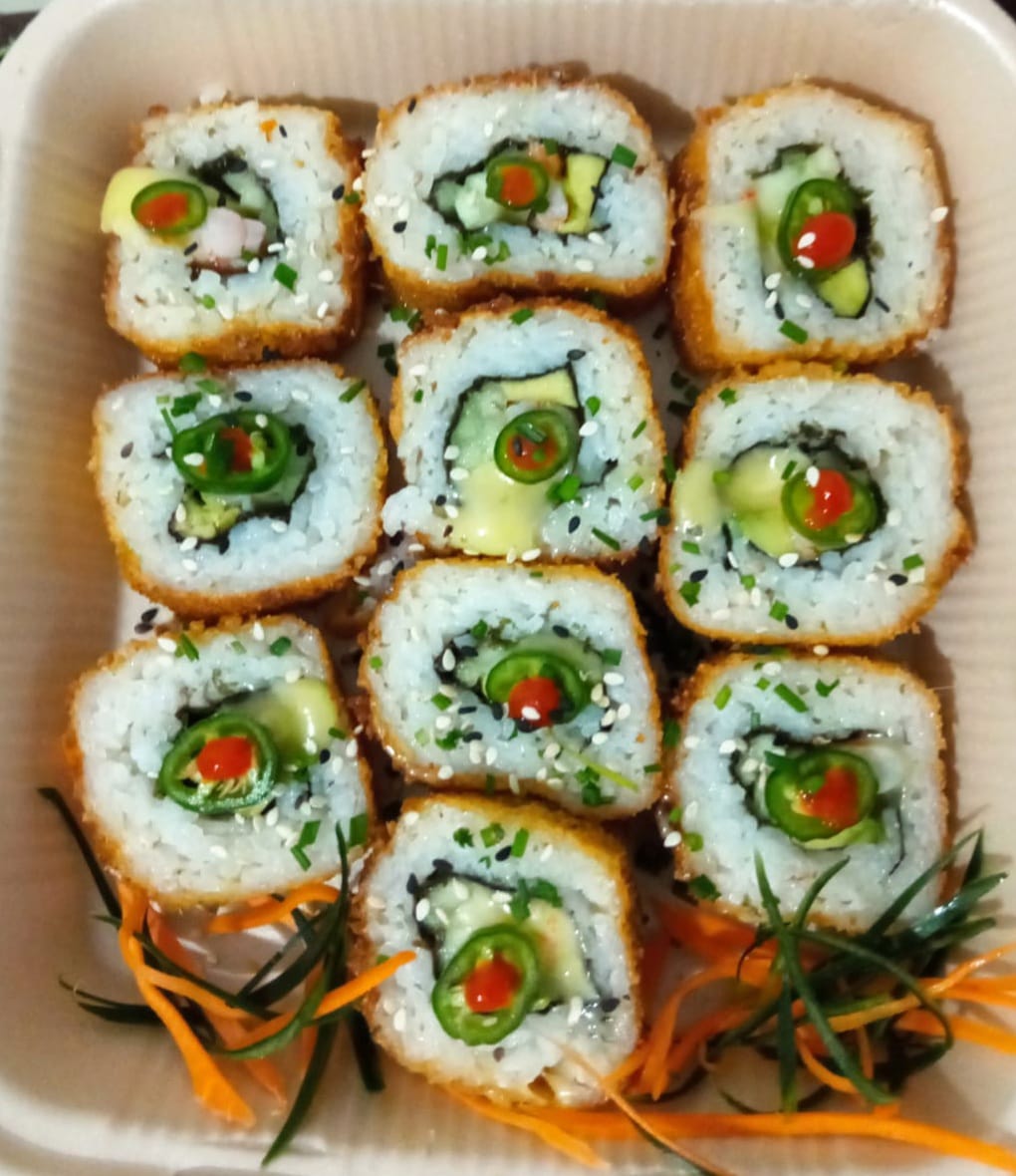 empanizado, chipotle y sirachi por fuera. p/d arrachera, camaron , queso fundido y chile serrano