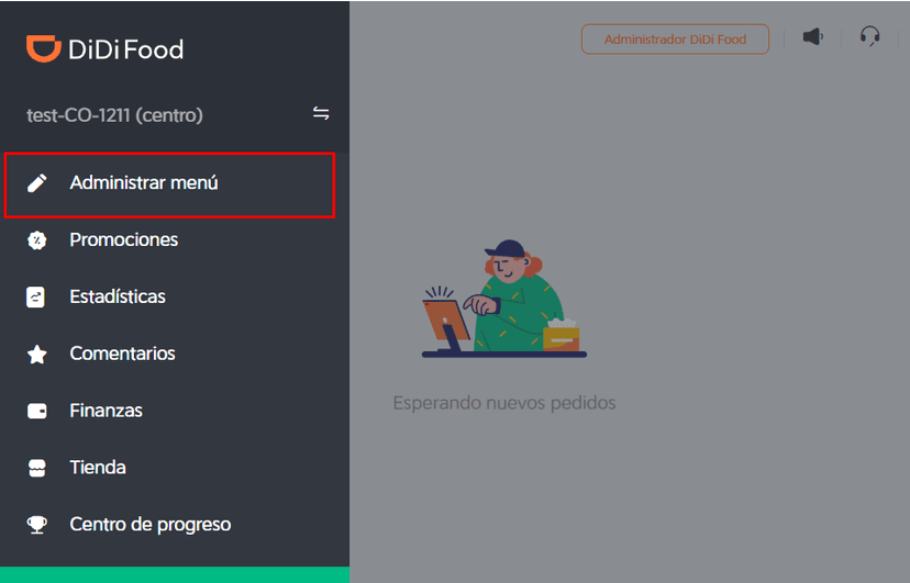 Selecciona la opción de administrar menú
